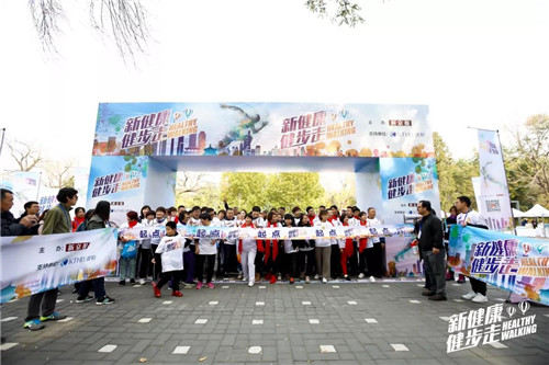 “新健康健步走”活动沿龙潭公园环湖跑道进行,全程6公里。在体操世界冠军毕文静的带领下,简单的热身过后,随着一声出发哨令,选手们迈开矫健的步伐出发了!