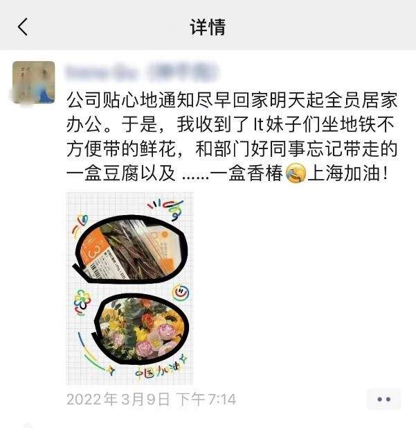 封控前一天,玫琳凯数百名浦西的员工陆续收到了公司寄来的第二个关环礼包——一份沉甸甸的蔬菜,浦东员工的蔬菜礼包也在之后几天悉数送达。
