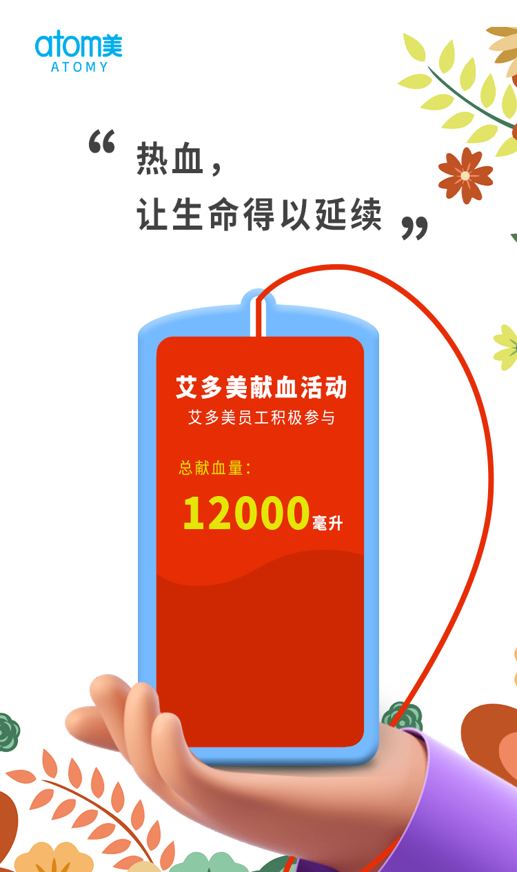本次活动共献血12000毫升,无偿献血传递的不仅是一份爱心,更是一份责任义务,无偿献血,值得做,也必须做。艾多美公司将继续秉承分享文化公益理念,为公益事业贡献温暖力量,继续用“艾”为生命加油。