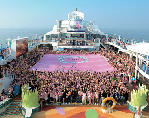 历经几个月的精心筹备,克丽缇娜于2015年8月31日至9月5日,包下了世界顶级的超豪华游轮美国皇家加勒比“海洋量子号”,邀请了消费者及优秀加盟商,乘坐这艘巨轮驶往宝岛台湾,在享受丰盛的海上游轮之旅、欣赏宝岛风光的同时,深度探寻克丽缇娜的美丽源头,感受克丽缇娜对美的完美诠释,共赴一场身、心、灵的巅峰之旅!