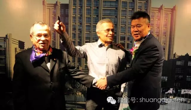 在诺贝尔广场,亚利耶•瓦谢尔教和双迪股份首席执行官陈玉松、董事长兼总裁潘晓非共同为“生命之鼎设计图”揭幕。