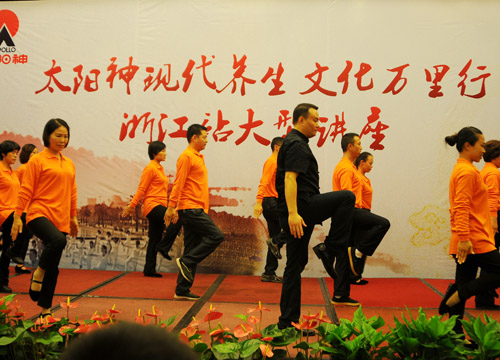2013年11月3日下午,太阳神现代养生文化万里行大型公益讲座在素有“上有天堂,下有苏杭”美誉的浙江杭州盛大召开。本次活动得到了公司领导的高度重视,广东太阳神集团党委副书记、营销总部总经理张鸣先,营销总部副总经理韩宗平,集团党委委员、网络党总支书记、营销总部副总经理白学锋,策划部经理邱蔚彤,产品培训部副经理、太阳神现代养生操创始人李红卫,浙江分公司经理徐擎,江西分支外事经理祝词元以及近千名经销商伙伴共同参与了此次大会。