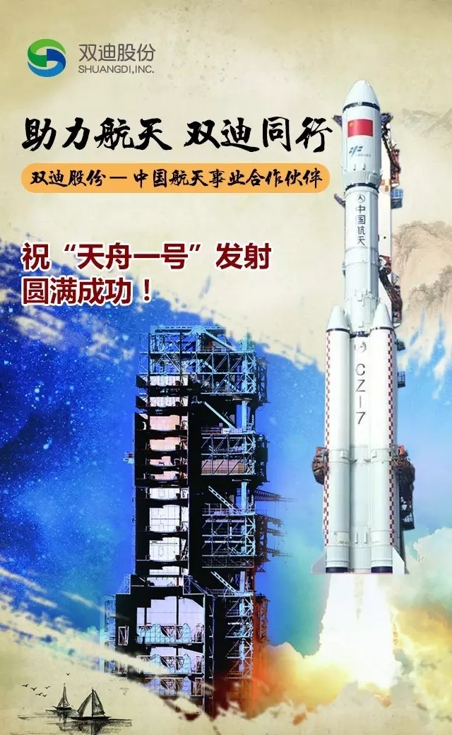 4月20日晚19时41分,长征七号遥二火箭发射天舟一号货运飞船在海南文昌航天发射中心成功发射。双迪股份董事长兼总裁潘晓非应邀现场观摩,见证了这一神圣的时刻。