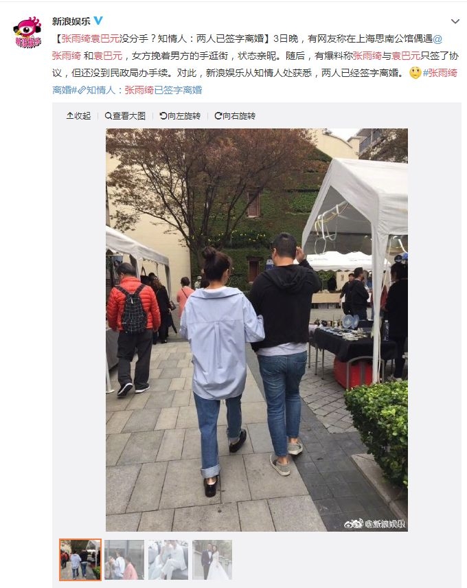 前段时间才因为和老公发生肢体冲突,并声明离婚的的张雨绮又被网友爆料和袁巴元先生逛街了!