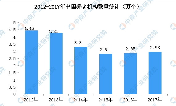 2017年全国各类养老服务机构和设施15.5万个,比上年增长10.6%,其中:注册登记的养老服务机构2.9万个,社区养老机构和设施4.3万个,社区互助型养老设施8.3万个;各类养老床位合计744.8万张,比上年增长2%(每千名老年人拥有养老床位30.9张),其中社区留宿和日间照料床位338.5万张。根据民政部2018年4季度机构数据显示:老年人与残疾人服务机构共29792个。