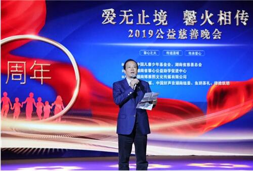 晚会伊始,湖南省慈善总会会长段林毅致辞。他首先对长期关心支持湖南慈善公益事业发展的各位领导、企业家朋友表示衷心的感谢和崇高的敬意。多年来慈善总会汇聚全省的爱心力量,严格落实省委省政府打好脱贫攻坚战的战略部署,聚焦扶贫攻坚,聚焦特殊群众,坚持慈善厚德,努力做好慈善捐助、慈善救助的工作。2019年,全省各级慈善机构共募集爱心款物超15亿元,先后帮助困难群众达600多万人次。慈善公益事业是一项伟大的事业,将与时代发展同频共振,需要社会各界大力的参与和支持。他呼吁,全省广大公益组织、企业界爱心朋友、社会爱心人士能更加踊跃积极投身到公益事业中,汇聚湖南力量,创造湖南慈善事业新成就,为打好脱贫攻坚战、全面建成小康社会,实现中华民族伟大复兴的中国梦贡献力量。