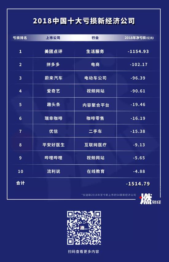 2018年中国十大亏损新经济公司