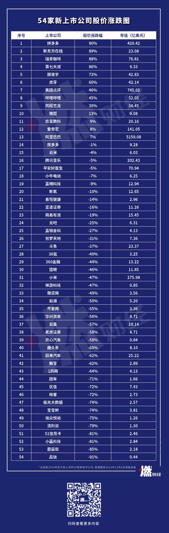 燃财经选取了2018年至今新上市的54家新经济公司,通过数据分析和对比,试图回答这三个问题。