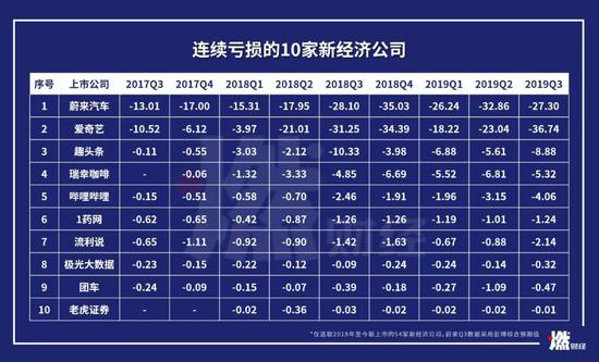 根据Q3财报数据,我们将2019年中国新经济亏损最多的10家公司盘点如下: