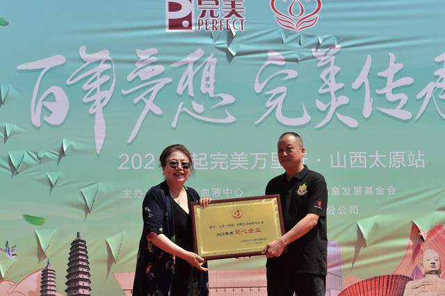 完美山西分公司薄一宏总经理介绍,无偿献血已经成为完美公司的一项社会责任和持之以恒的公益行动。1999年,完美公司在三位领导人的带领下,开始组织员工和经销商举办无偿献血活动。2004年,完美公司成立十周年,同时在全国拉开第一届“完美百城千店万人献血活动”的序幕。2009年,完美公司在全国各地陆续成立无偿献血志愿队,随时候命。2014年,完美总公司一名员工成功捐献造血干细胞,挽救了一名身患白血病的中学生,成为广东省2014年首例成功捐献造血干细胞。截至2020年12月31日,完美人累计献血总人数逾30万人次,献血总量逾8,100万毫升,全国无偿献血志愿队已达32支,已有6名完美人捐献造血干细胞成功挽救白血病患者。