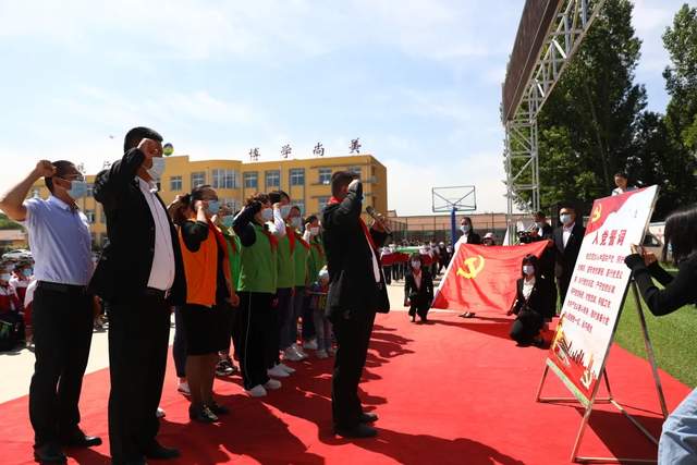 (▲第211所尚赫梁玉梅公益学校揭牌 践行入党誓词环节)
