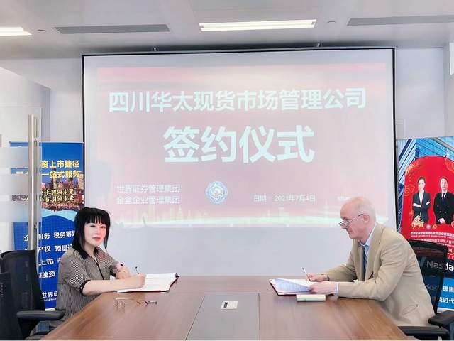 2021年7月4日,四川华太现货市场管理有限公司(以下简称“华太市场”)与世界证券管理集团、上海金盒企业管理咨询集团在上海陆家嘴中国金融信息大厦签署上市辅导协议,正式入驻全球资本市场。