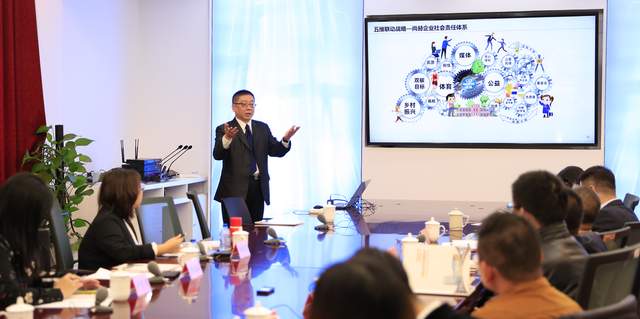 尚赫公益基金会秘书长陈政裕介绍尚赫“五维联动”的企业社会责任体系