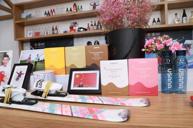 这里是冰雪运动爱好者与健康追求者的天地,各种冰雪运动装备、一张张雪场与赛场的照片、一款款USANA葆婴的健康产品将这里装点一新。