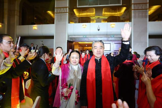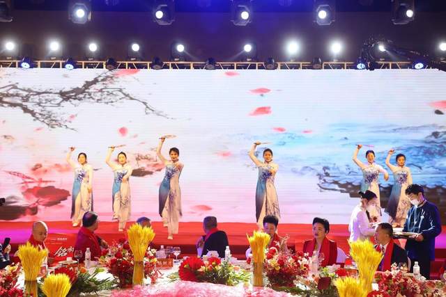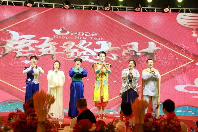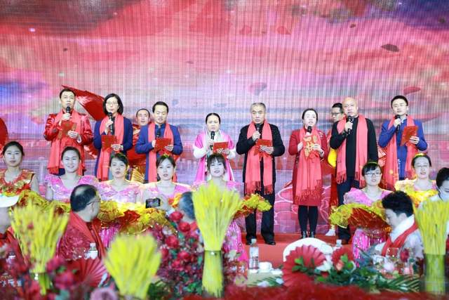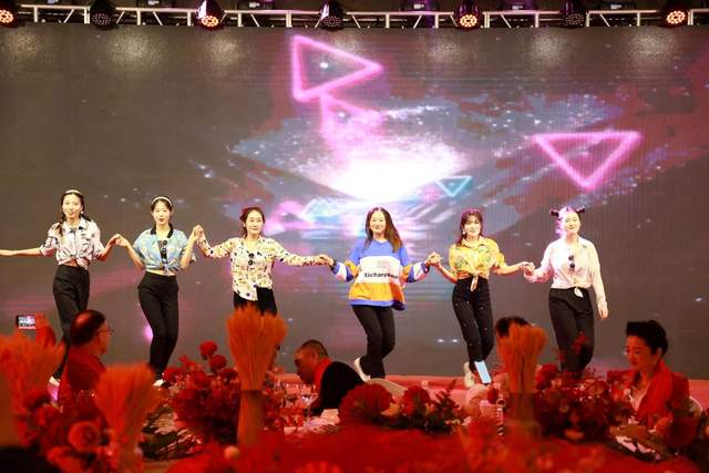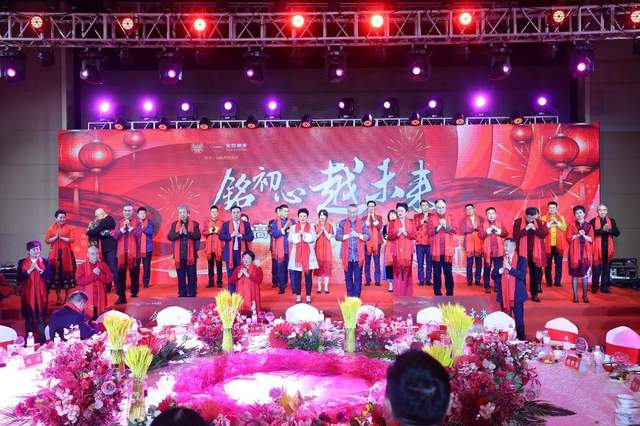 一曲热情昂扬的开场舞后,晚宴正式拉开帷幕,两位大家长与公司高管共同为大家带来合唱曲目《大中国》。
