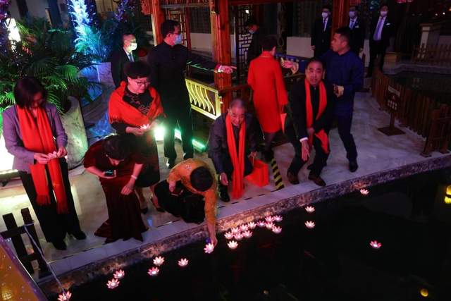 董事长、梁总与所有安然人共同来到一楼,家人们纷纷写下新年祝福高挂在许愿树上,并将精美别致的花灯放入水中祈祷平安团圆。寄托着所有人美好祝愿的盏盏花灯,随着流水飘向远方、走向未来……