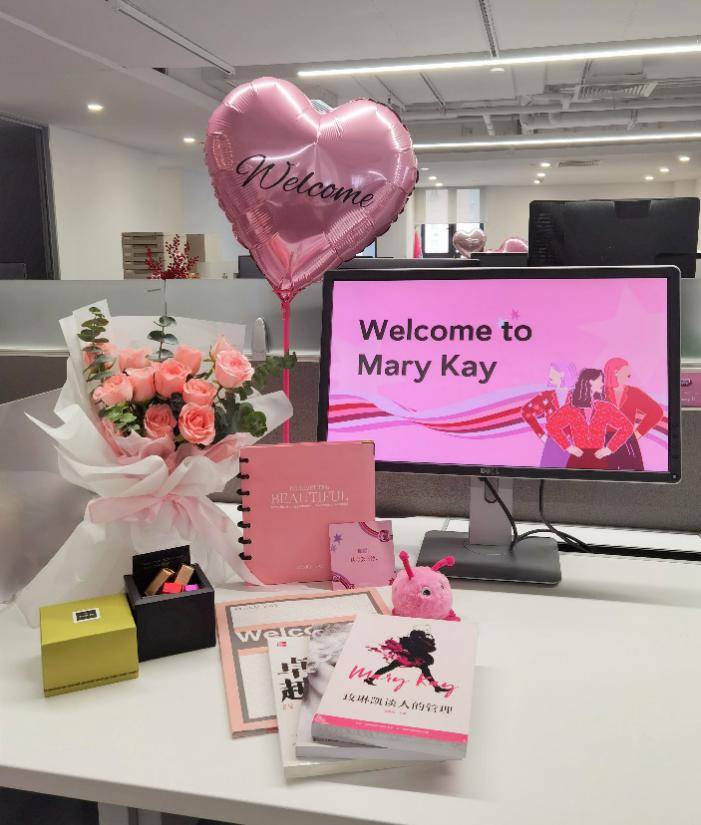 (玫琳凯提前为新员工精心布置工位,欢迎他们的加入)